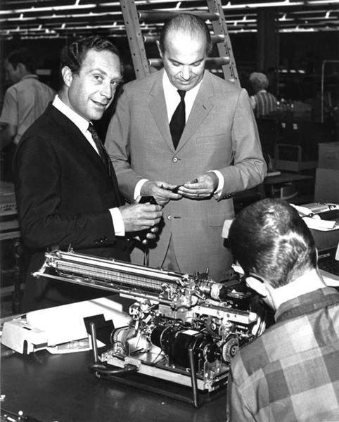 Roberto Olivetti (1928-1985), figlio di Adriano, svolge un ruolo importante nel promuovere e guidare le prime attività del Gruppo Olivetti nel settore elettronico. Nel 1955 contribuisce all'avvio del progetto Elea per la costruzione da parte della Olivetti di un calcolatore elettronico per applicazioni commerciali. Mantiene stretti rapporti con Mario Tchou, che guida il progetto Elea. In quegli anni diviene anche presidente della SGS (Società Generale Semiconduttori), fondata dalla Olivetti con Telettra nel 1957 e in seguito partecipata dall'americana Fairchild; SGS è la prima azienda italiana che produce componenti elettronici solidi. Roberto Olivetti diviene amministratore delegato della Olivetti tra il 1962 e il 1964, seguendo in particolare gli sviluppi della Divisione Elettronica fino a quando l'ingresso del "gruppo di intervento" nel capitale Olivetti porta alla nomina di Bruno Visentini come presidente e di Aurelio Peccei come amministratore delegato. Anche dopo la cessione del 75% della Divisione Elettronica alla General Electric, Roberto Olivetti resta nel Gruppo il punto di riferimento per tutte le residue attività in campo elettronico. E’ nuovamente nominato amministratore delegato del Gruppo insieme a Bruno Jarach dal 1967 al 1971. La foto lo ritrae nel settembre 1969 a Toronto, nello stabilimento della Olivetti Underwood Canada, insieme a Lanfranco Amato, President della consociata canadese.